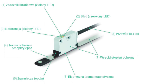 (7) Wysoki stopień ochrony. Głowica i taśma magnetyczna mają stopień ochrony IP67.