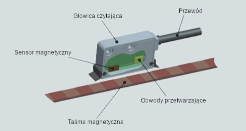 Liniowe enkodery składają się z głowicy i taśmy magnetycznej. Głowica pomiarowa zawiera sensor magnetyczny. Przemieszczając się względem magnetycznej taśmy, na której naprzemiennie znajdują się bieguny N i S, generuje sygnał elektryczny w postaci sinusoidy adekwatny do aktualnej pozycji i prędkości posuwu.