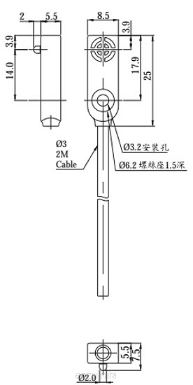 Czujnik indukcyjny prostopadłościenny. Zasięg 2mm. Wyjście PNP N.C. Zasilanie 10-30Vdc. Przewód 2m.