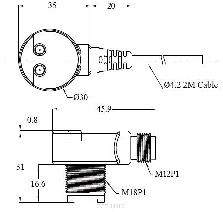- przewód umieszczony pod kątem 90° w stosunku do osi czujnika - oszczędność miejsca podczas instalacji