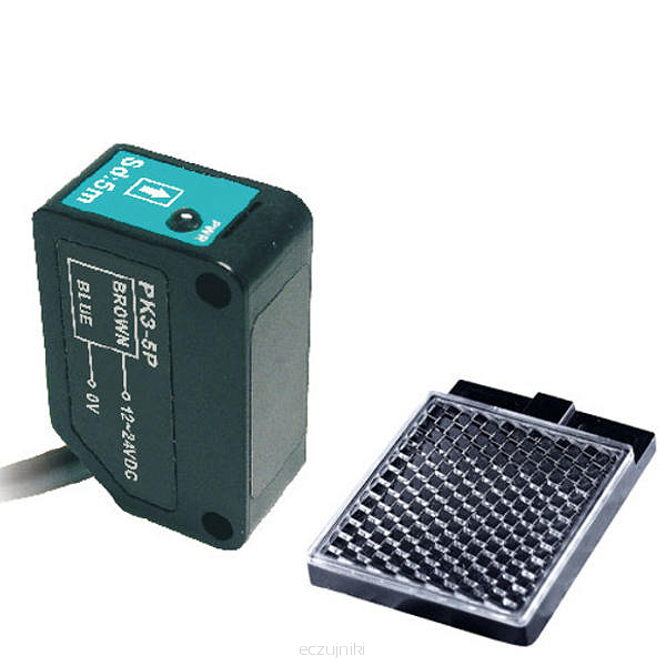 Przemysłowy czujnik optyczny, refleksyjny (czujnik + odbłyśnik) służący do wykrywania dowolnych obiektów.