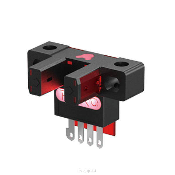 Przemysłowy czujnik optyczny, miniaturowy, widełkowy, służący do wykrywania dowolnych obiektów nieprzeźroczystych.