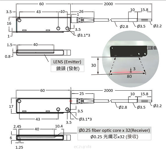 | Średnica zewn. przewodu światłowodowego: | Ø2.8 |