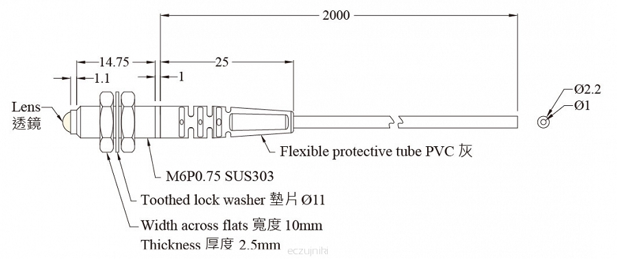 | Średnica zewn. przewodu światłowodowego: | Ø2.2 |