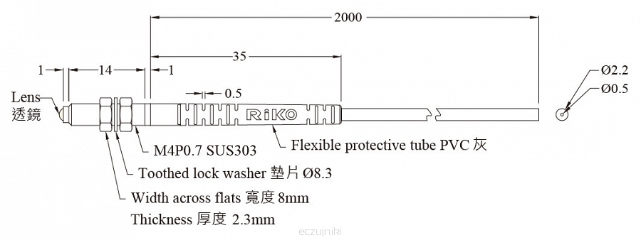 Średnica zewn. przewodu światłowodowego: Ø2.2