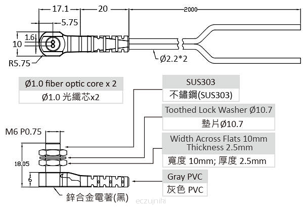 Czujnik światłowodowy odbiciowy PR-620-T01 - specyfikacja techniczna: