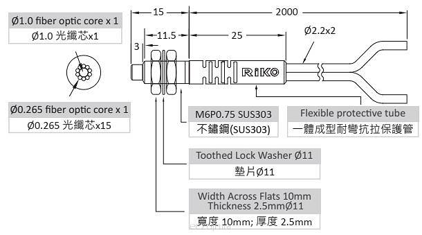 Czujnik światłowodowy, odbiciowy RiKO PRC-620 - specyfikacja techniczna: