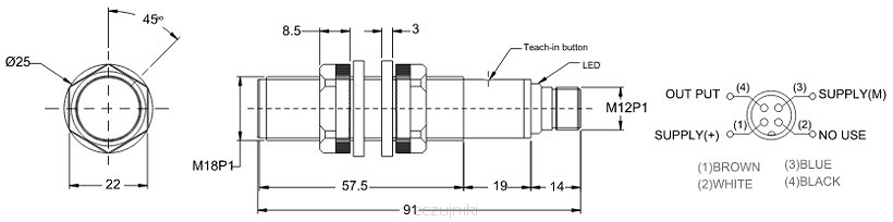 Zasięg 100-900mm. Gniazdo M12. Zasilanie 15-30Vdc. Wyjście NPN N.O./N.
