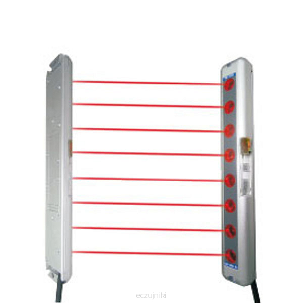 Kurtyna świetlna o wysokości 140mm. Odległość pomiędzy wiązkami 20mm. Zasięg pracy 0,6 - 5m. Sygnalizacja świetlna trybu pracy. Kompaktowa obudowa.