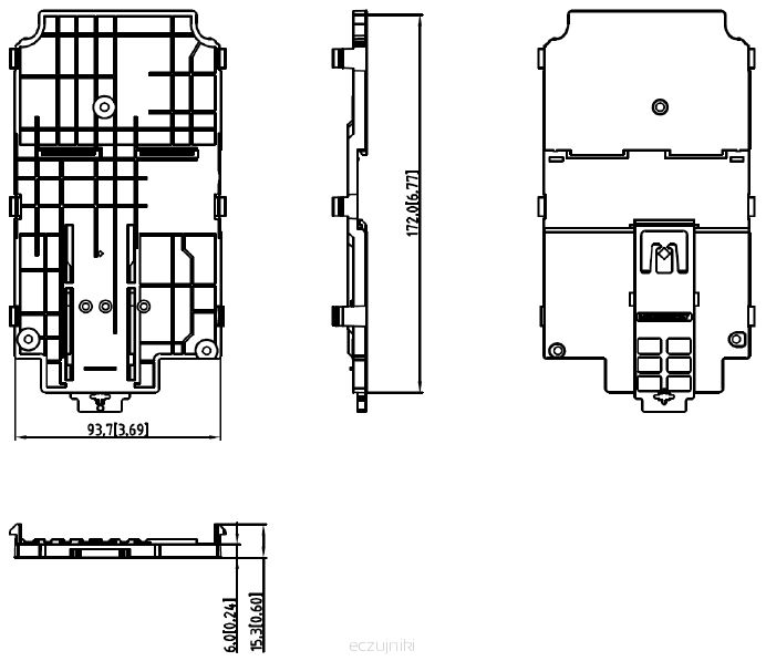 EVO6-Kit-DR2 jest to uchwyt umożliwiający montaż falownika LITEON z serii EVO6000 na szynie DIN. Uchwyt przymocowuje się do falownika za pomocą 6 zatrzasków oraz śruby. Model DR2 współpracuje z większą obudową falowników EVO6000 większej mocy.