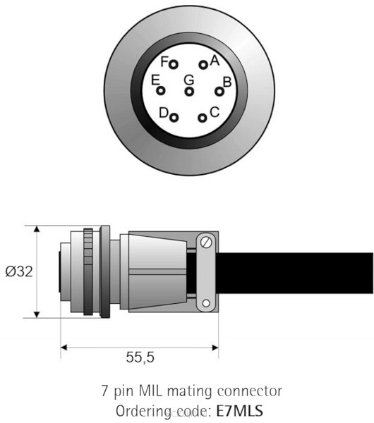 Solidna, masywna wtyczka typu MIL (17 pinów), oznaczenie E7MLS.